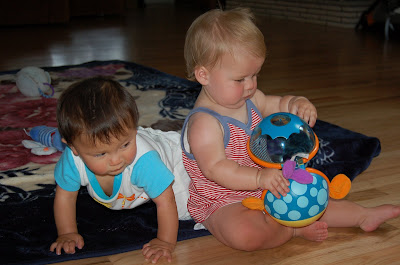 On Saturday we went to Longview, WA to visit some friends. Justin's friend Chris, his wife Shirley, and their 9-month old, Dominic (you might remember him as Ramona's valentine) recently moved to Longview, and are now in driving distance from us. Justin's and Chris' friend Kristian was there visiting from New Mexico, so we decided it was the perfect time to make the drive. Jason, Andrea and 5 month old Liam caravaned with us from Seattle, and we had a great time together in Longview. Kristian and Chris had BBQ'd ribs, and salmon, and made many wonderful sides that were ready for us when we arrived. So, we just hung out with the three babies, ate fantastic food, and caught up. We decided it is something we're going to have to do every year, it was such a good time. There is something to say for people that you can always have a good time with. I'm already looking forward to next year (or maybe planning a get together sooner).